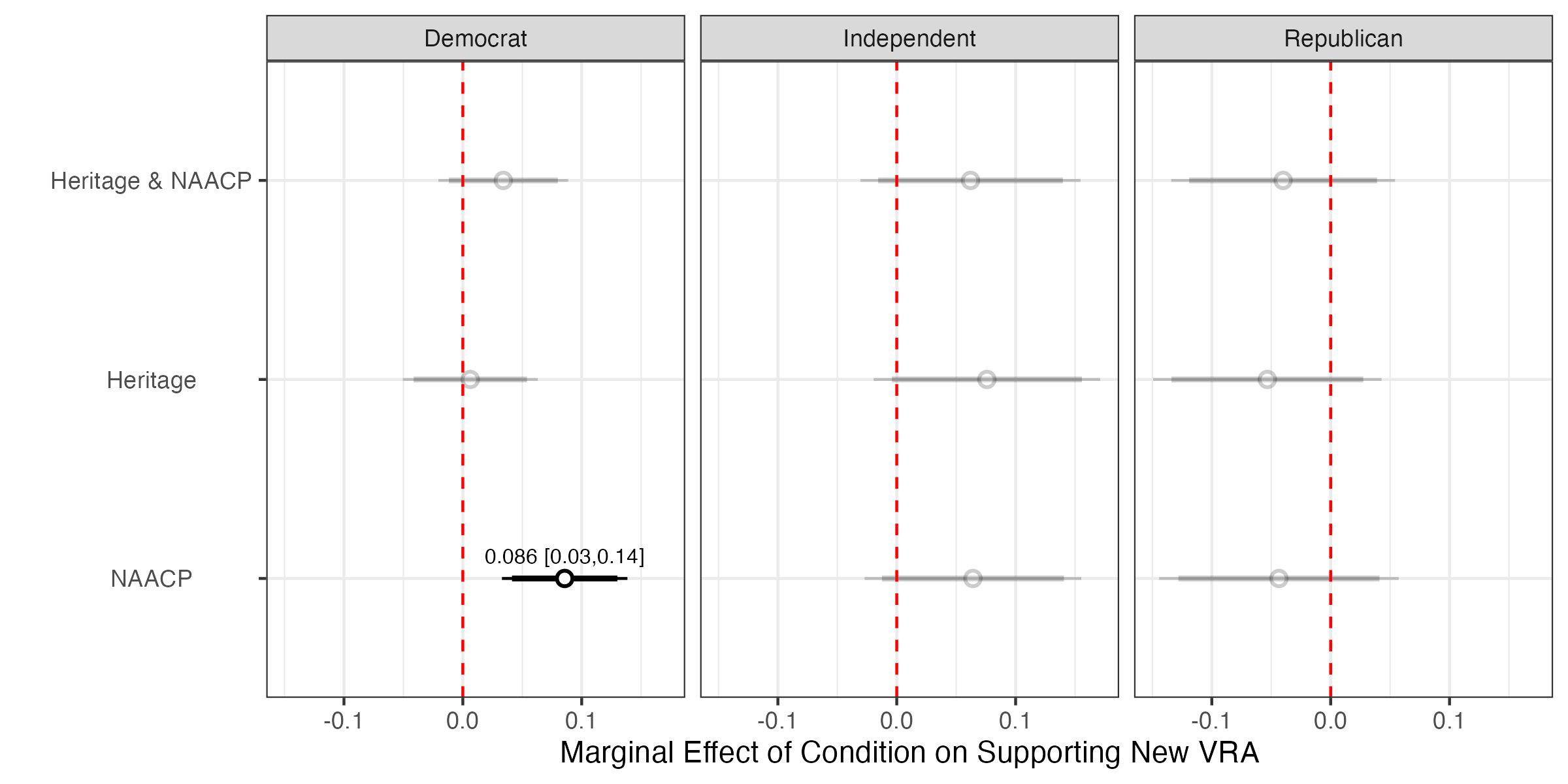 anti-voting rights reform cues have no impact on support. These effects